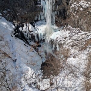 真冬の凍りついた華厳の滝