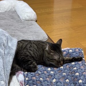 コタツでウトウトする、ちぃくん