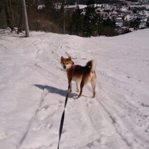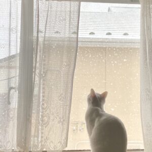 雪に夢中な雪色の猫です